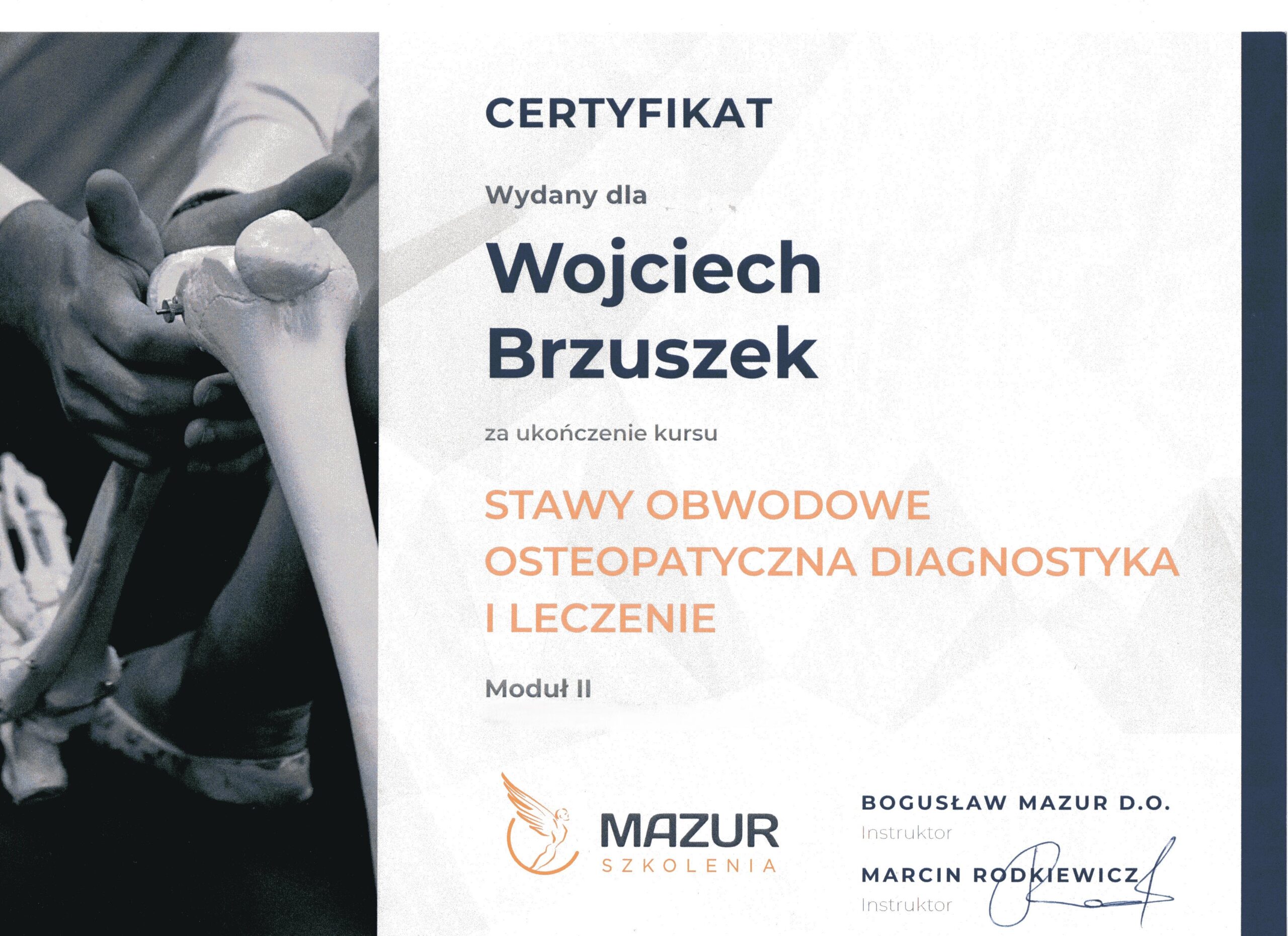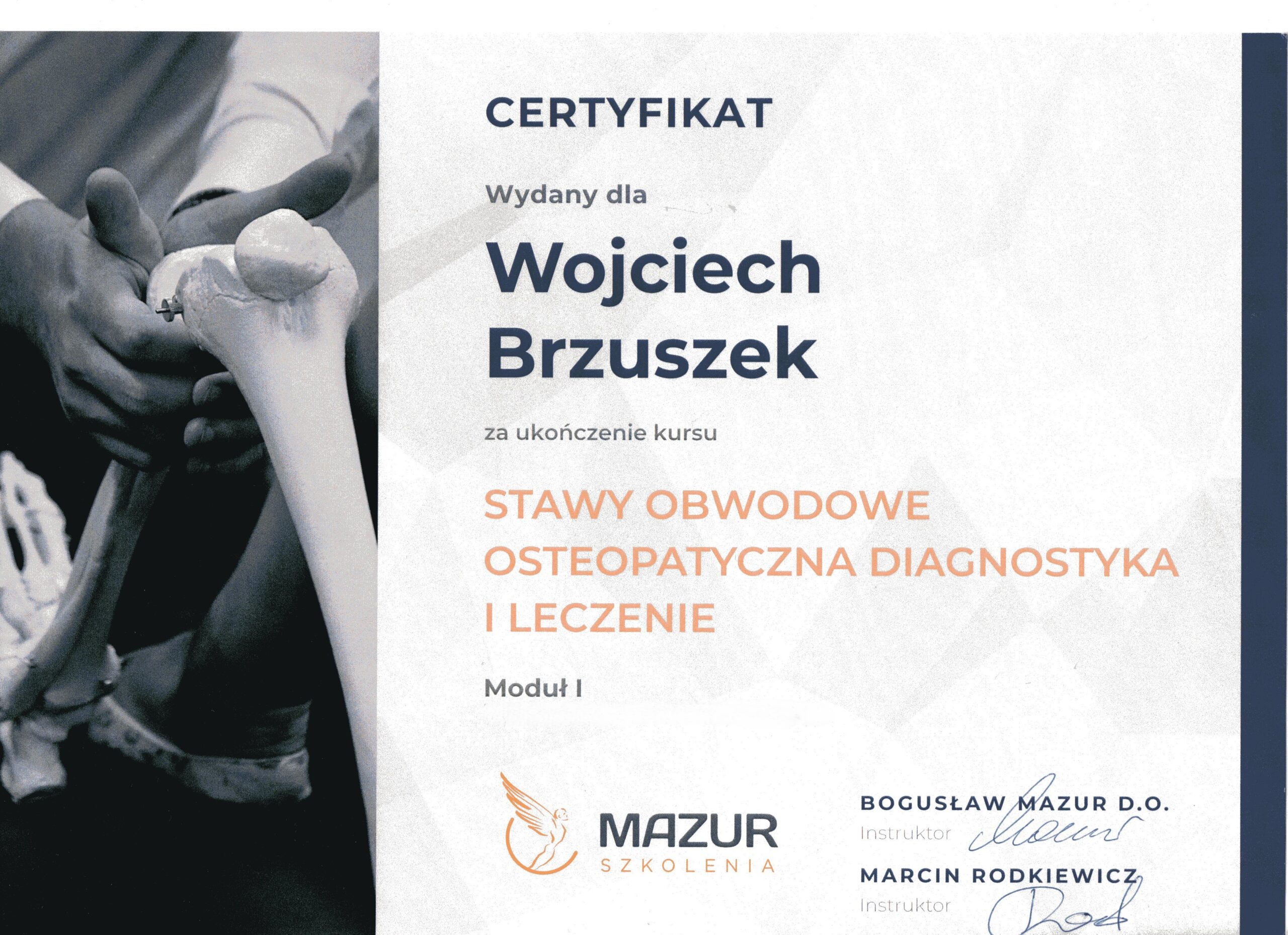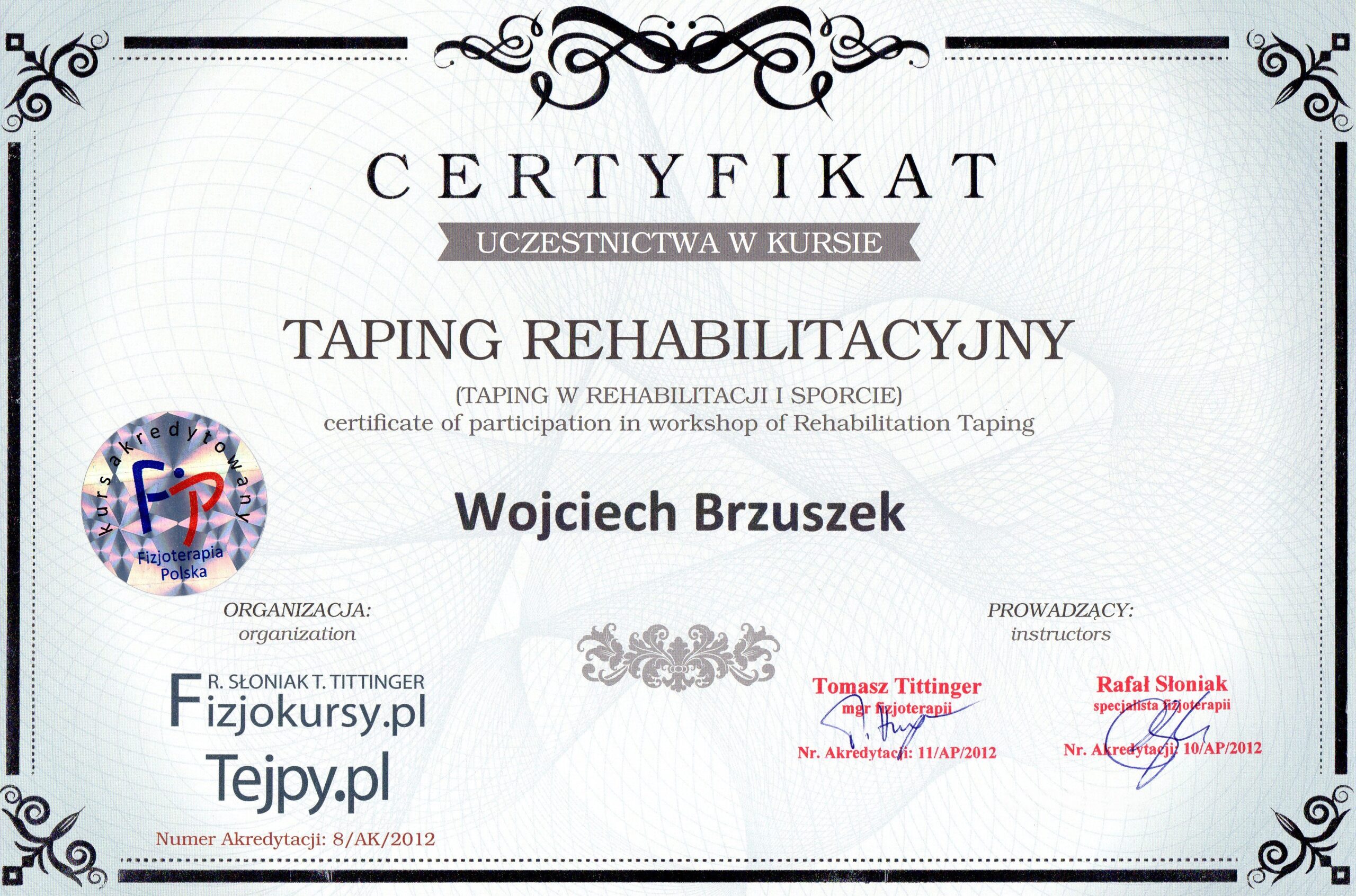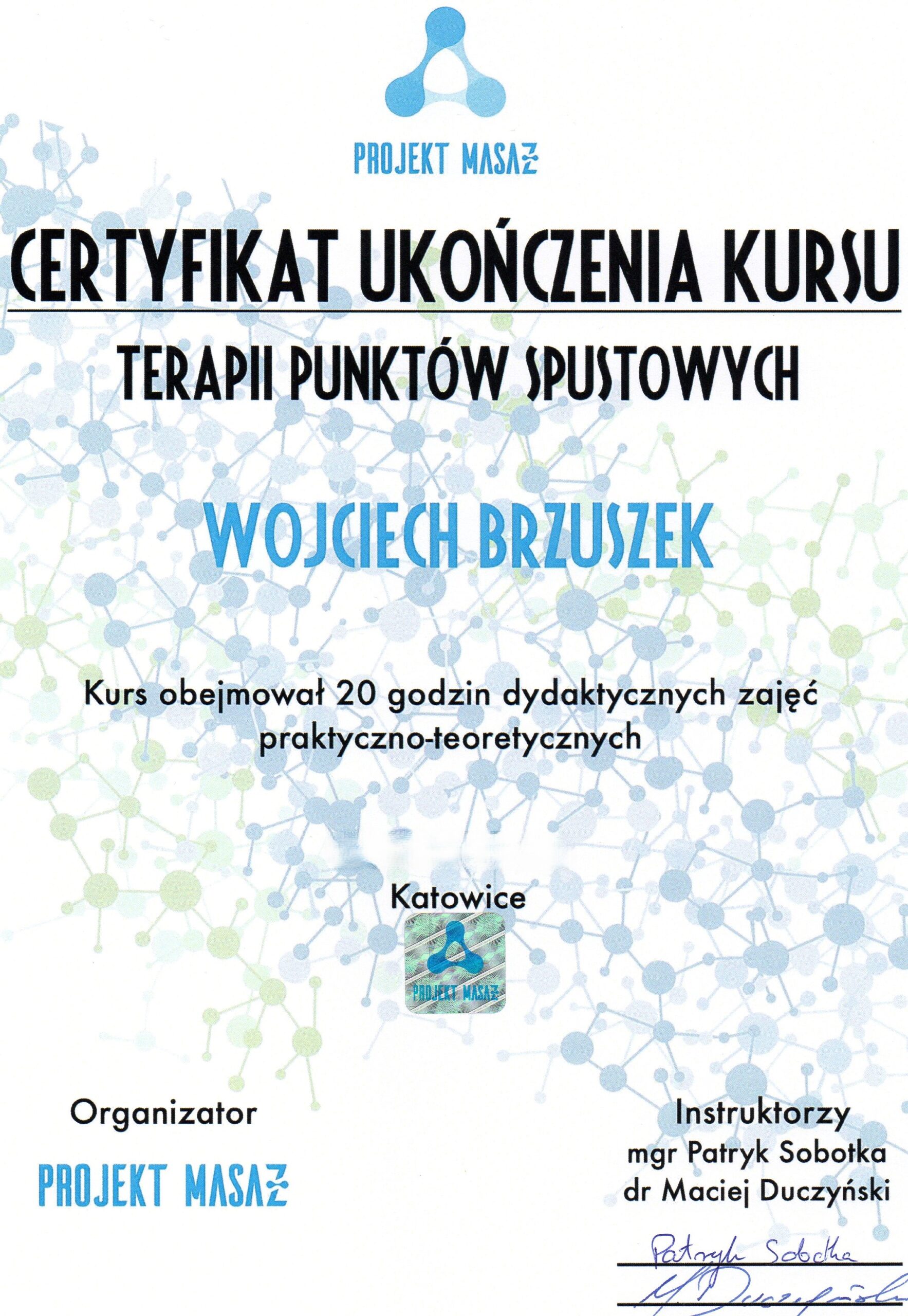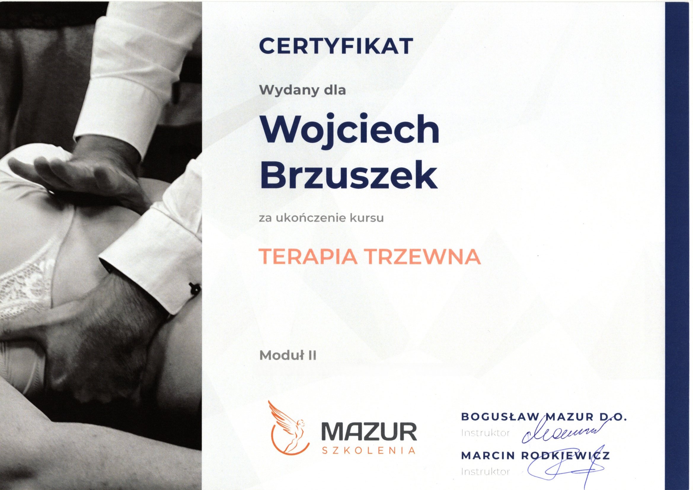 Ukończyłem liczne kursy z zakresu terapii manualnej, igłoterapii, masażu tkanek głębokich, terapii punktów spustowych oraz szkolenia obejmujące programowanie treningu wraz z fizjoterapią funkcjonalną.