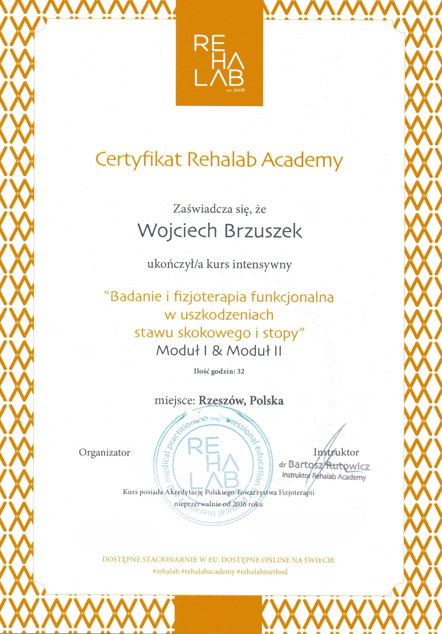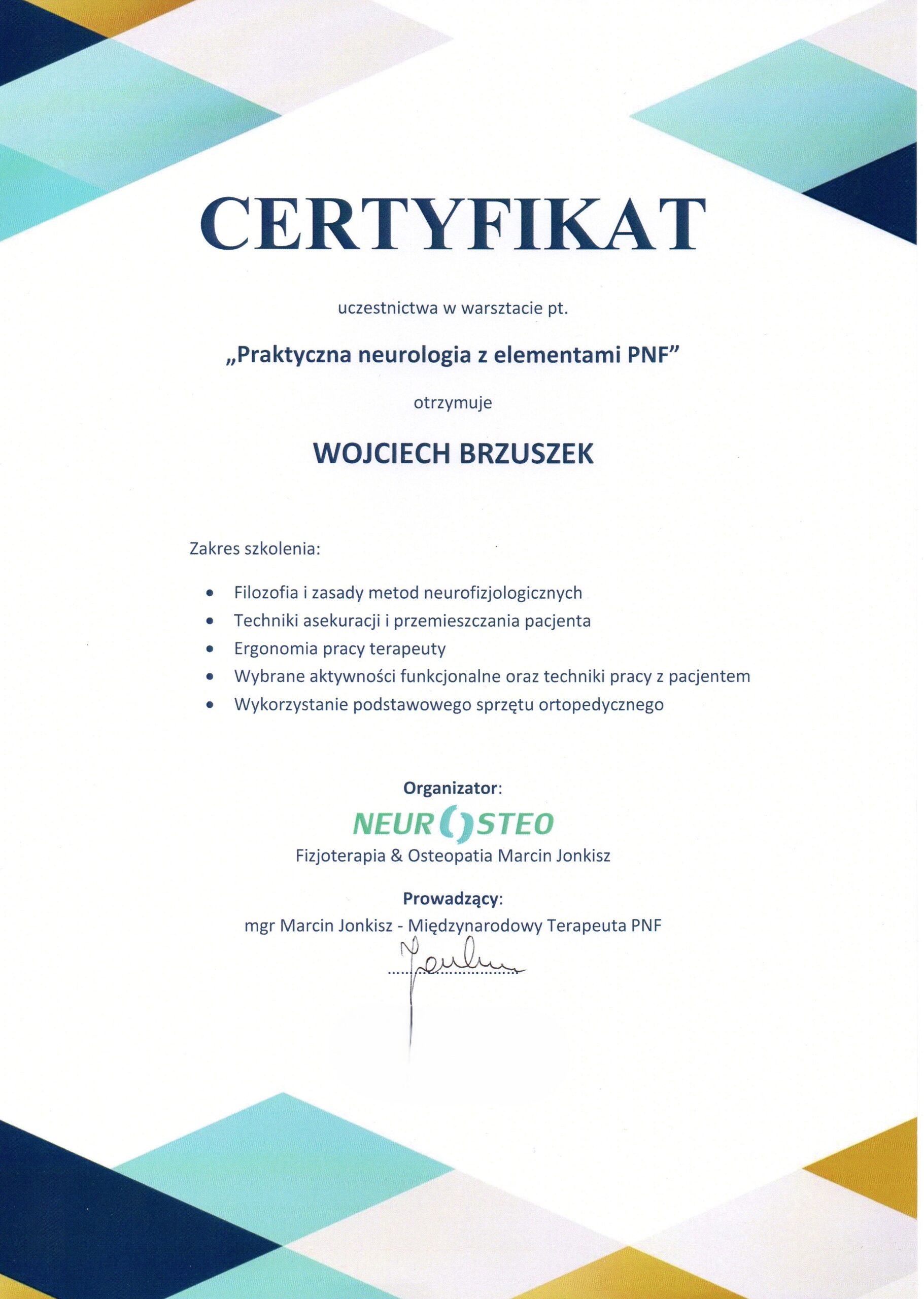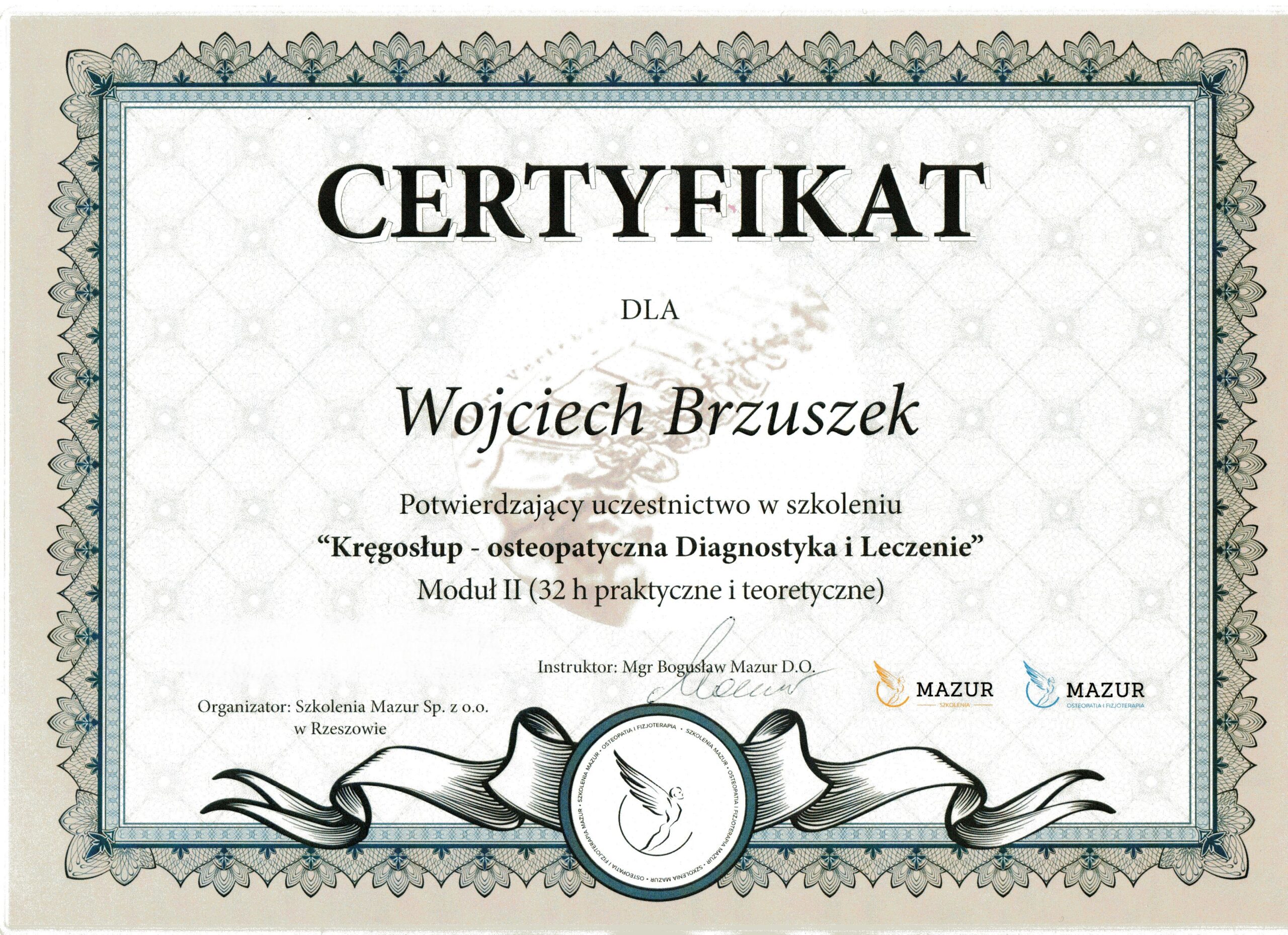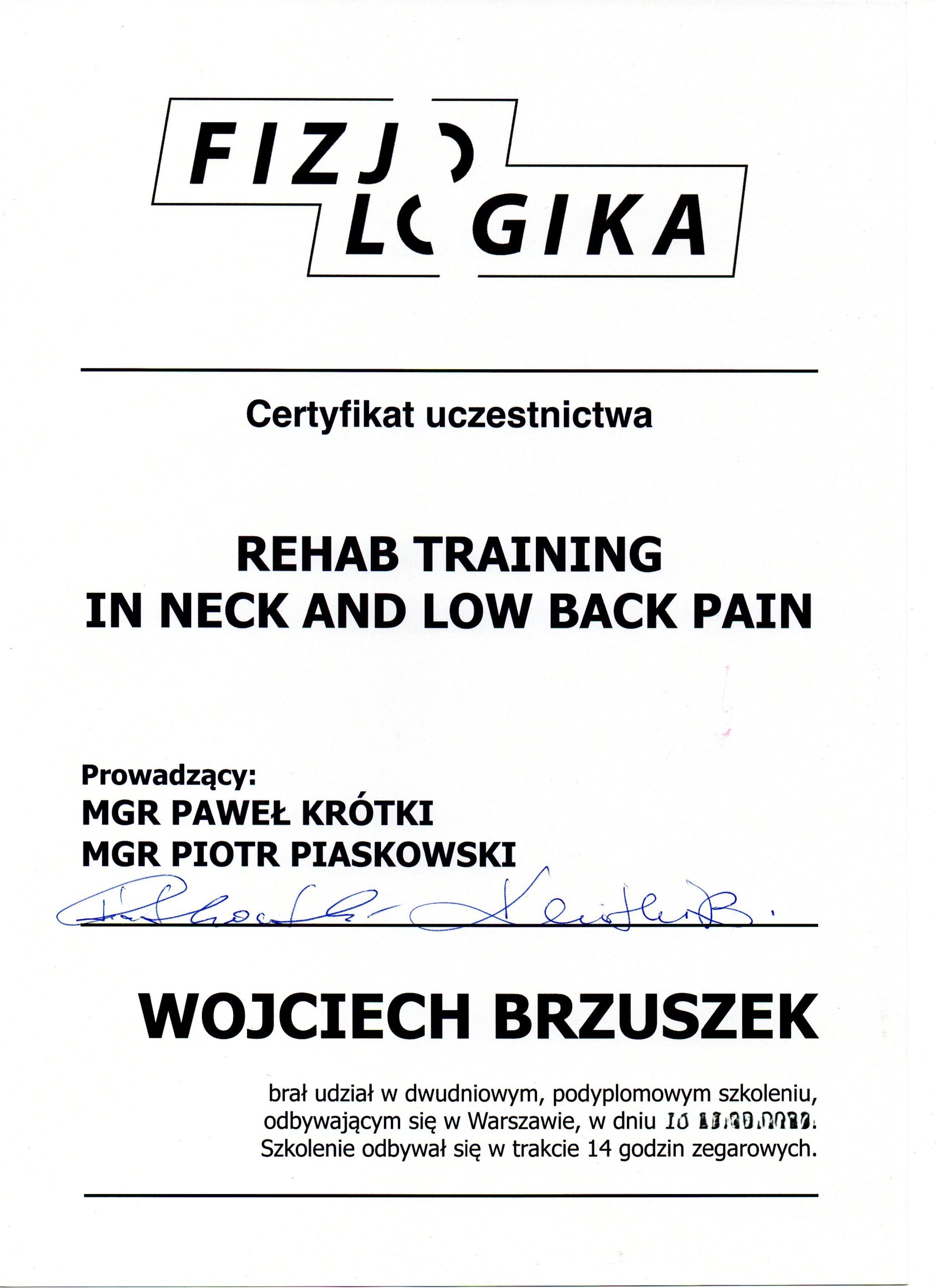 Ukończyłem liczne kursy z zakresu terapii manualnej, igłoterapii, masażu tkanek głębokich, terapii punktów spustowych oraz szkolenia obejmujące programowanie treningu wraz z fizjoterapią funkcjonalną.
