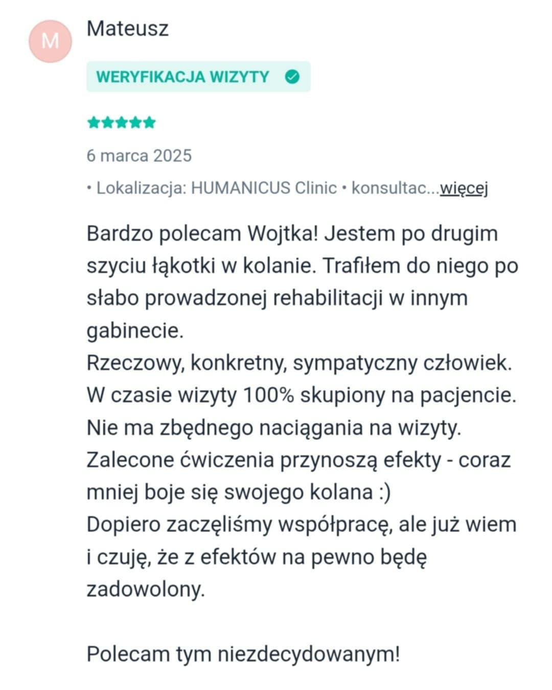 Specjalizuję się w leczeniu pacjentów z dolegliwościami bólowymi w obrębie narządu ruchu, uwzględniając trening medyczny jako nieodłączny element powrotu do pełni sprawności.